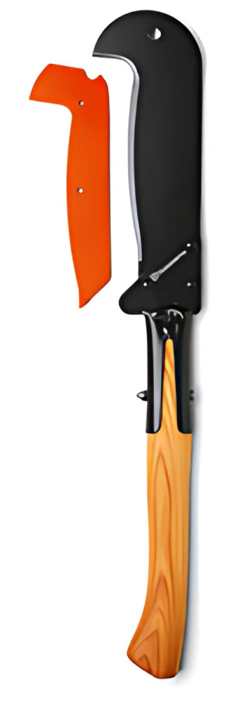 Gallyazókés speciális, edzett acélkéssel és hikorifa nyéllel. A késhez műanyag élvédő tartozik. Bokrok tisztítására és fák gallyazására használható. Teljes hossza 60 cm (a nyél hossza 31 cm).