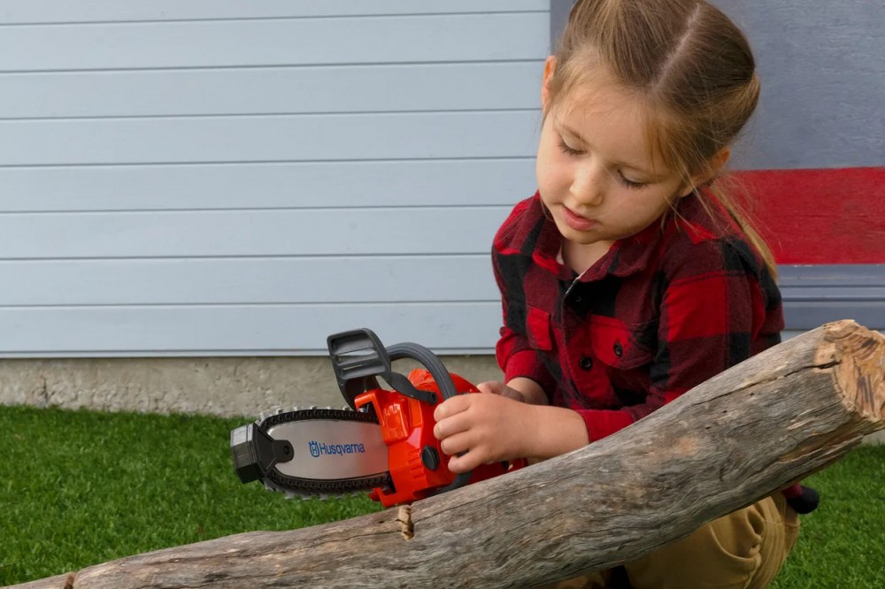 A Husqvarna Játék láncfűrész biztonságos, strapabíró és szórakoztató választás minden kis barkácsolónak, aki rajong az élethű kerti gépekért.